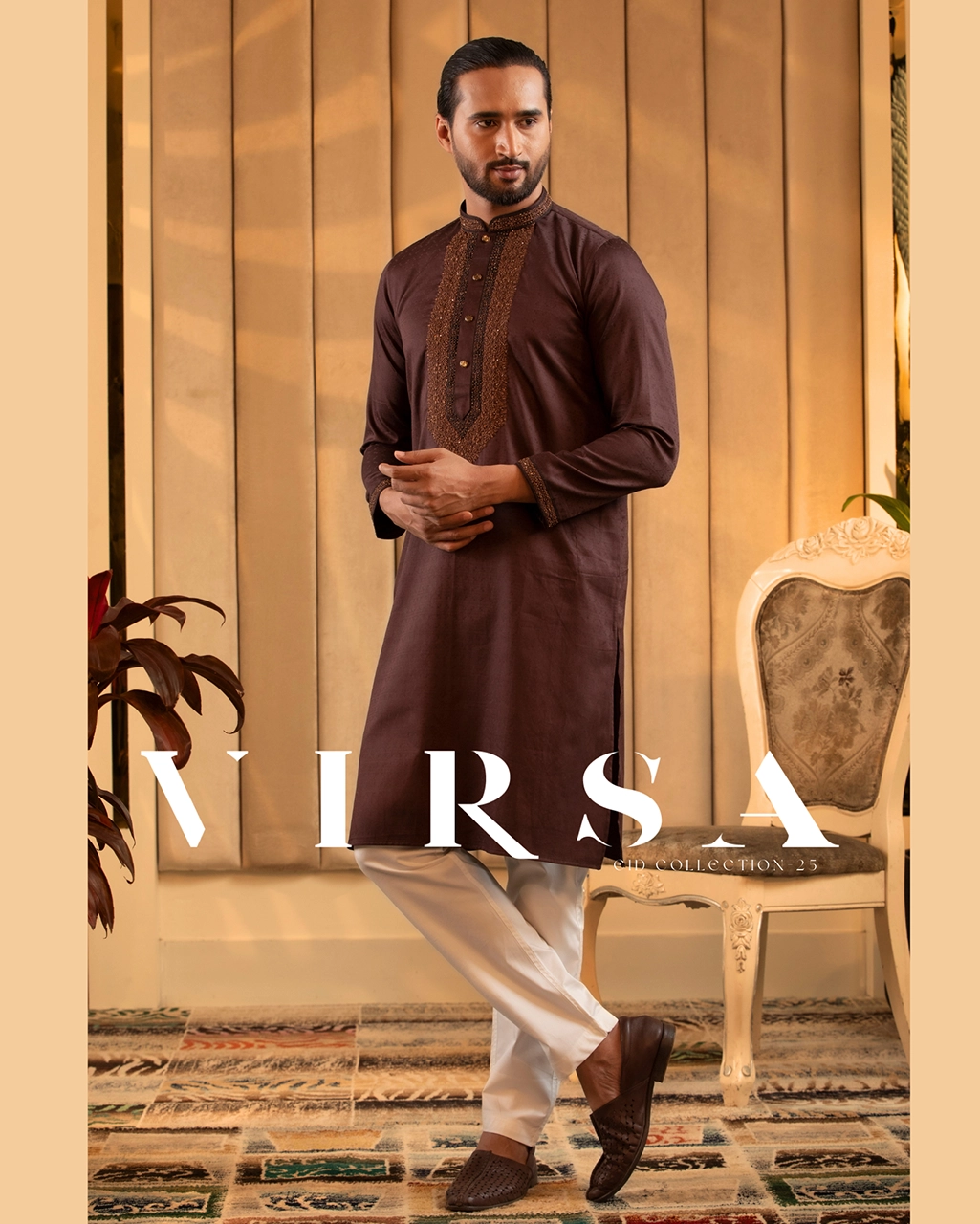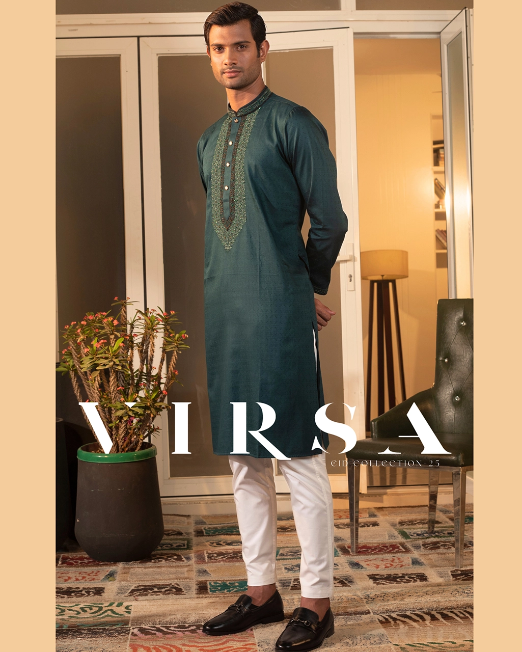 To add a different look to Eid or any event or festival, “VIRSA” lifestyle has come with a new taste of modernity, keeping in mind the young generation of this country, for tasteful men, under the supervision of their own designer in their own factory, a group of well-trained craftsmen, skillful and perfect artistic craftsmanship, luxurious textures, and a royal aesthetic come together to create the ultimate statement of elegance. A collection of excellent local and foreign fabrics, vibrant colors, aesthetic and attractive designs.
